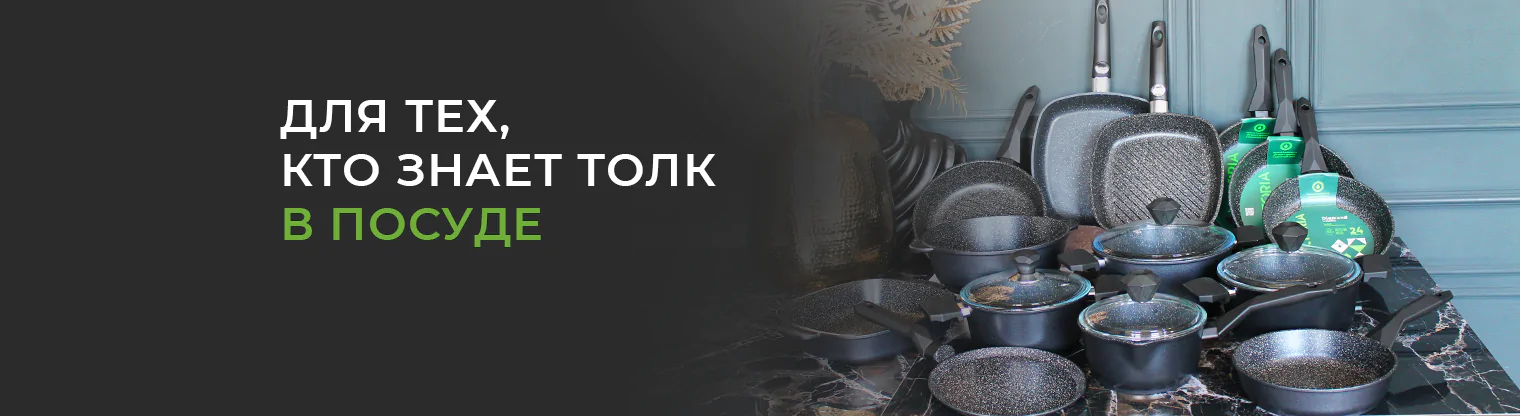 Бакелит — уникальный вид современного пластика. Его популярность в производстве кухонной посуды обусловлена особыми свойствами: повышенной прочностью, способностью выдерживать высокие температуры и при этом не нагреваться. Шероховатая поверхность бакелита не дает рукам соскальзывать с ручек и надежно удерживать посуду в любом положении. Бакелитовые ручки приятные на ощупь, особенно с покрытием Soft-touch. К минусам можно отнести ограничение по температуре — бакелитовые ручки выдерживают нагрев до 180°C. Это несколько ограничивает использование их в духовке и на конфорке стоит следить, чтобы ручки не оказались над зоной нагрева. Они не сгорят, но в воздухе появится неприятный запах горелой пластмассы, а поверхность ручек навсегда станет шершавой. При очень сильном нагреве ручки могут потерять форму.